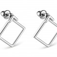 Серебряные серьги-трансформеры ВАВANA – украшение в стиле современный минимализм. Комбинация съемных элементов позволяет получить три варианта украшения. Без камней и вставок. Имеют декоративное и надежное защитное покрытие белым родием. Такое же покрытие используется в изделиях из белого золота 585 пробы. Родий – драгоценный металл платиновой группы и, нанесенный на поверхность украшения, позволяет сохранить его первоначальный вид, защищая от механических повреждений и потемнения. Толщина покрытия 10 мкм. Надеваются и застегиваются серьги так же, как серьги-гвоздики. Удобный и компактный силиконовый фиксатор в оправе из родированного ювелирного сплава позволяет просто и надежно зафиксировать украшение на любой мочке уха. Размер застежки 5,5х5 мм. Длина штифта для фиксации застежки 10 мм, диаметр штифта 0,8 мм. Более тонкий штифт, чем у стандартных винтовых застежек (1,2 мм) обеспечивает максимальный комфорт при надевании и ношении на любых мочках ушей. Размер несъемного элемента 5х5 мм, размер съемного прямоугольника 12х12 мм. Толщина проката проволоки 2 мм.