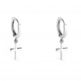 Серебряные серьги-пуссеты CROSS III – простое украшение для юношей и девушек в стиле современный минимализм. Без камней и вставок. Имеют декоративное и надежное защитное покрытие белым родием. Такое же покрытие используется в изделиях из белого золота 585 пробы. Родий – драгоценный металл платиновой группы и, нанесенный на поверхность украшения, позволяет сохранить его первоначальный вид, защищая от механических повреждений и потемнения. Толщина покрытия 10 мкм. Надеваются и застегиваются серьги так же, как серьги-гвоздики. Удобный и компактный силиконовый фиксатор в оправе из родированного ювелирного сплава позволяет просто и надежно зафиксировать украшение на любой мочке уха. Размер застежки 5,5х5 мм. Длина штифта для фиксации застежки 10 мм, диаметр штифта 0,8 мм. Более тонкий штифт, чем у стандартных винтовых застежек (1,2 мм) обеспечивает максимальный комфорт при надевании и ношении. Диаметр кольца 11 мм. Длина декоративной части 10 мм. Толщина 1 мм. Общая длина изделия 21 мм
