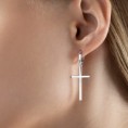 Серебряные серьги CROSS I - универсальное украшение для юношей и девушек. Имеют надежный европейский замок с защелкой-фиксатором. Можно носить отдельно как моносерьгу. Без камней и вставок. Имеют декоративное и надежное защитное покрытие белым родием. Такое же покрытие используется в изделиях из белого золота 585 пробы. Родий – драгоценный металл платиновой группы и, нанесенный на поверхность украшения, позволяет сохранить его первоначальный вид, защищая от механических повреждений и потемнения. Толщина покрытия 10 мкм. Диаметр замковой части 10 мм. Размер подвесной части 25х15 мм. Толщина проката проволоки 1,8 мм.